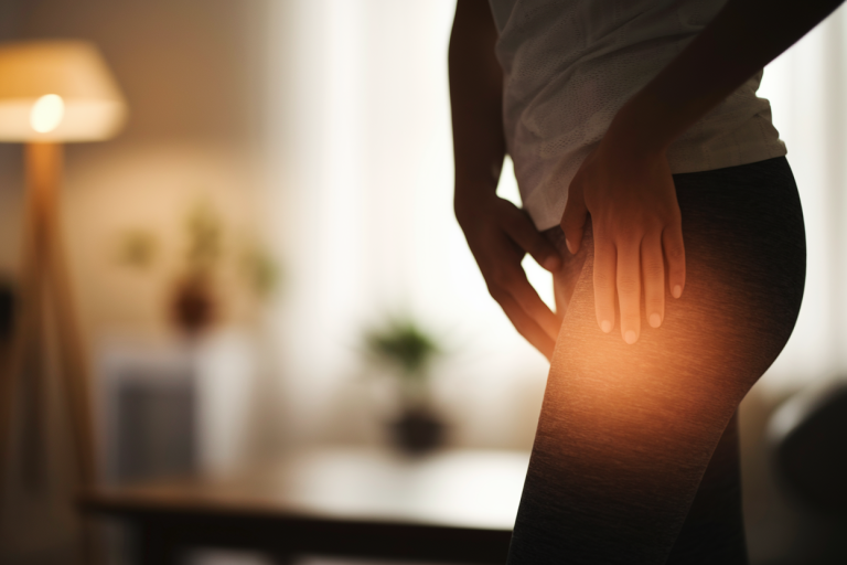 - Une douleur profonde dans l’aine ou la fesse, qui peut irradier vers le genou.